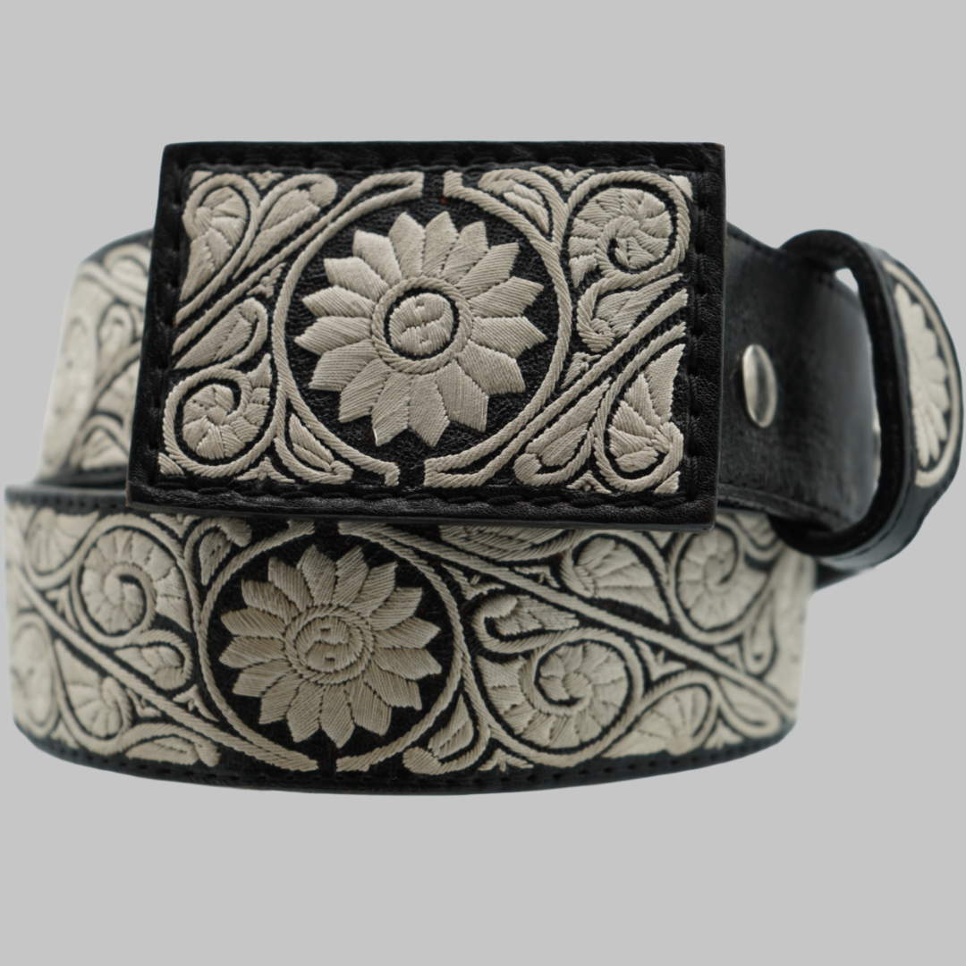 El cinto piteado es una obra maestra de la artesanía mexicana, elaborado a mano con hilos de pita natural bordados sobre cuero de alta calidad. Su diseño detallado y resistente refleja tradición, cultura y lujo en cada puntada.