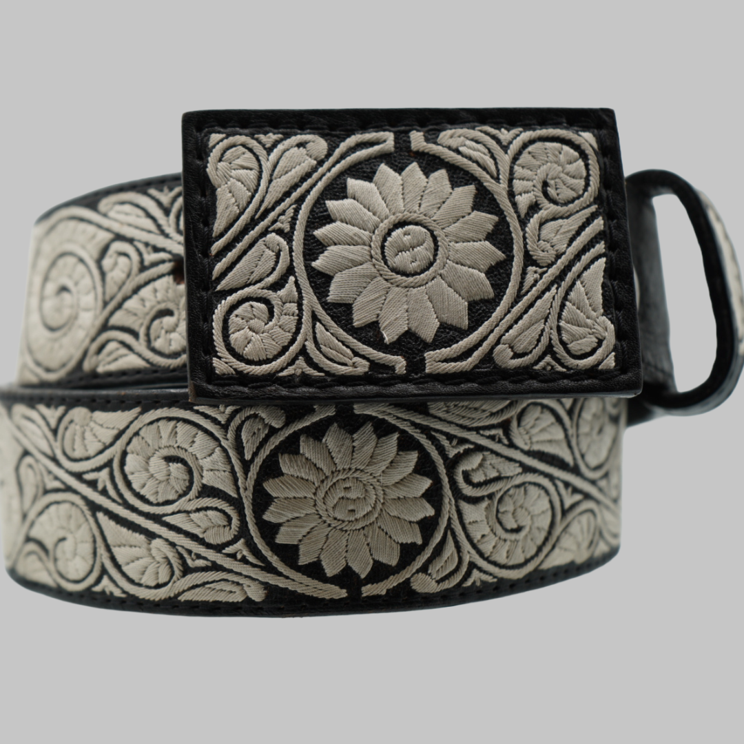 El cinto piteado es una obra maestra de la artesanía mexicana, elaborado a mano con hilos de pita natural bordados sobre cuero de alta calidad. Su diseño detallado y resistente refleja tradición, cultura y lujo en cada puntada.