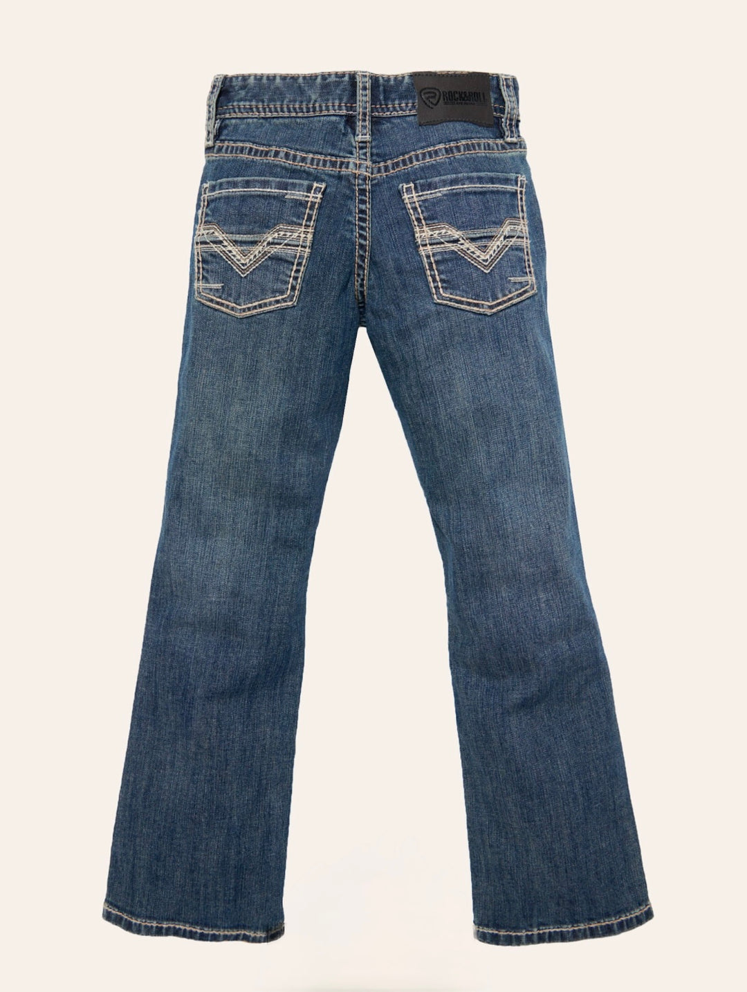 ROCK & ROLL DENIM BOY'S DARK VINTAGE LADDER STITCH BOOTCUT JEANS