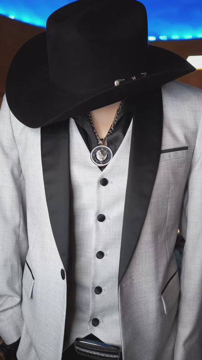 Make a bold, refined statement with this sophisticated 3-piece suit, designed for the modern gentleman. Featuring a sleek Grey/Black base with a sharp contrasting black collar detail, this set delivers elegance with an edge.