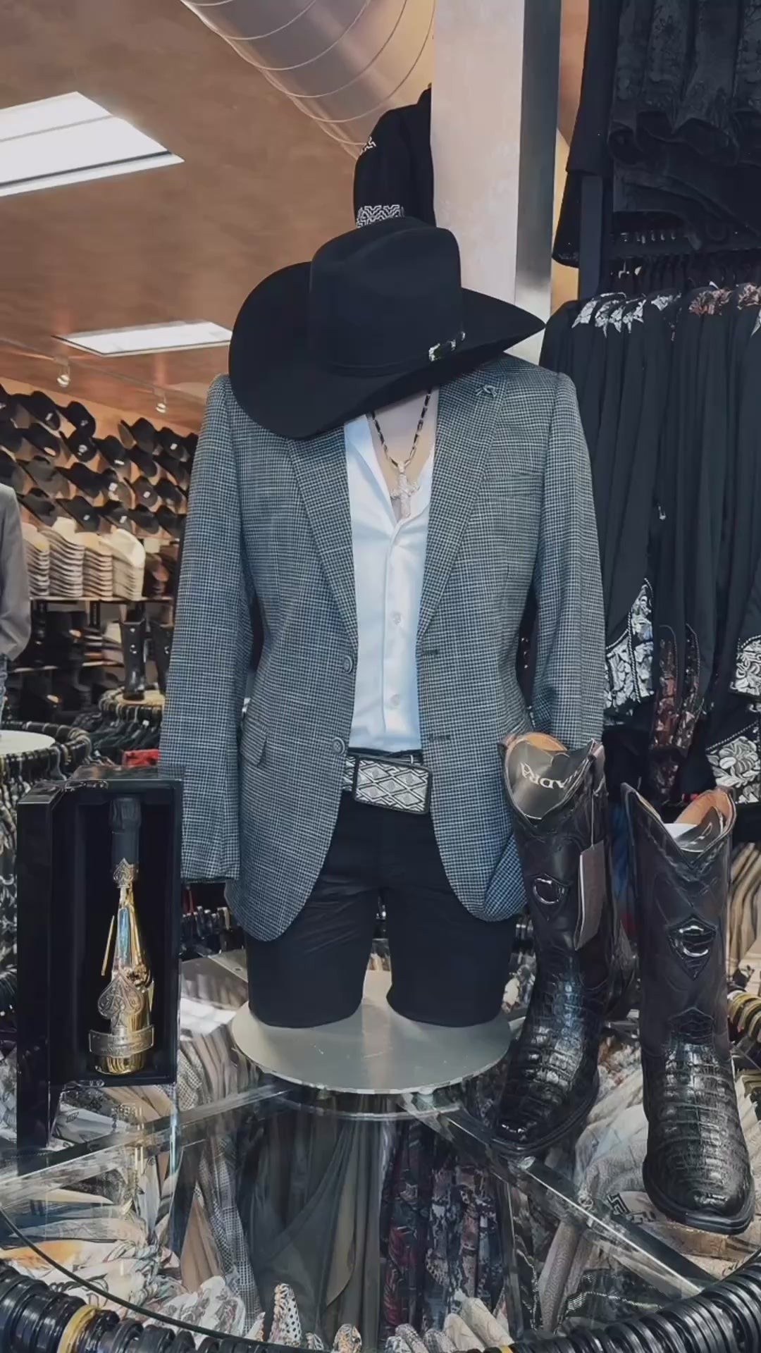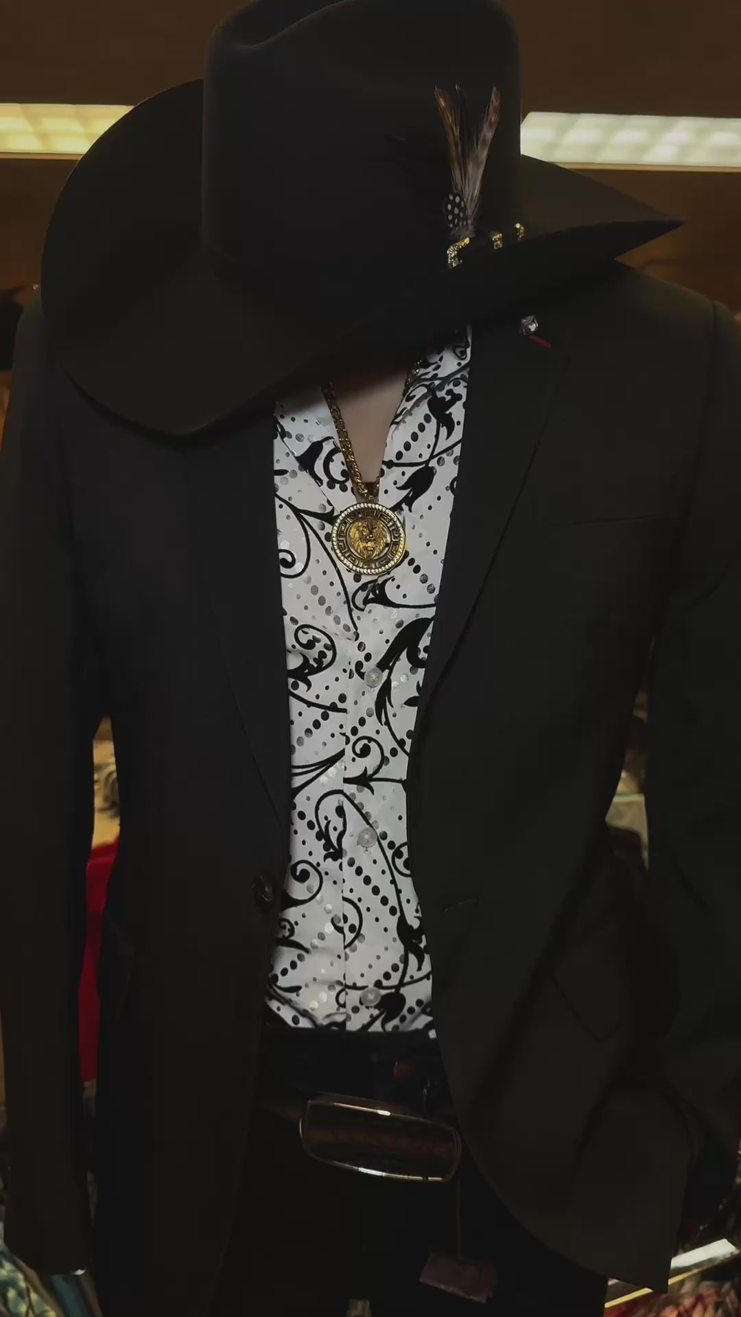 Blazer negro estilo western con dos botones para hombre