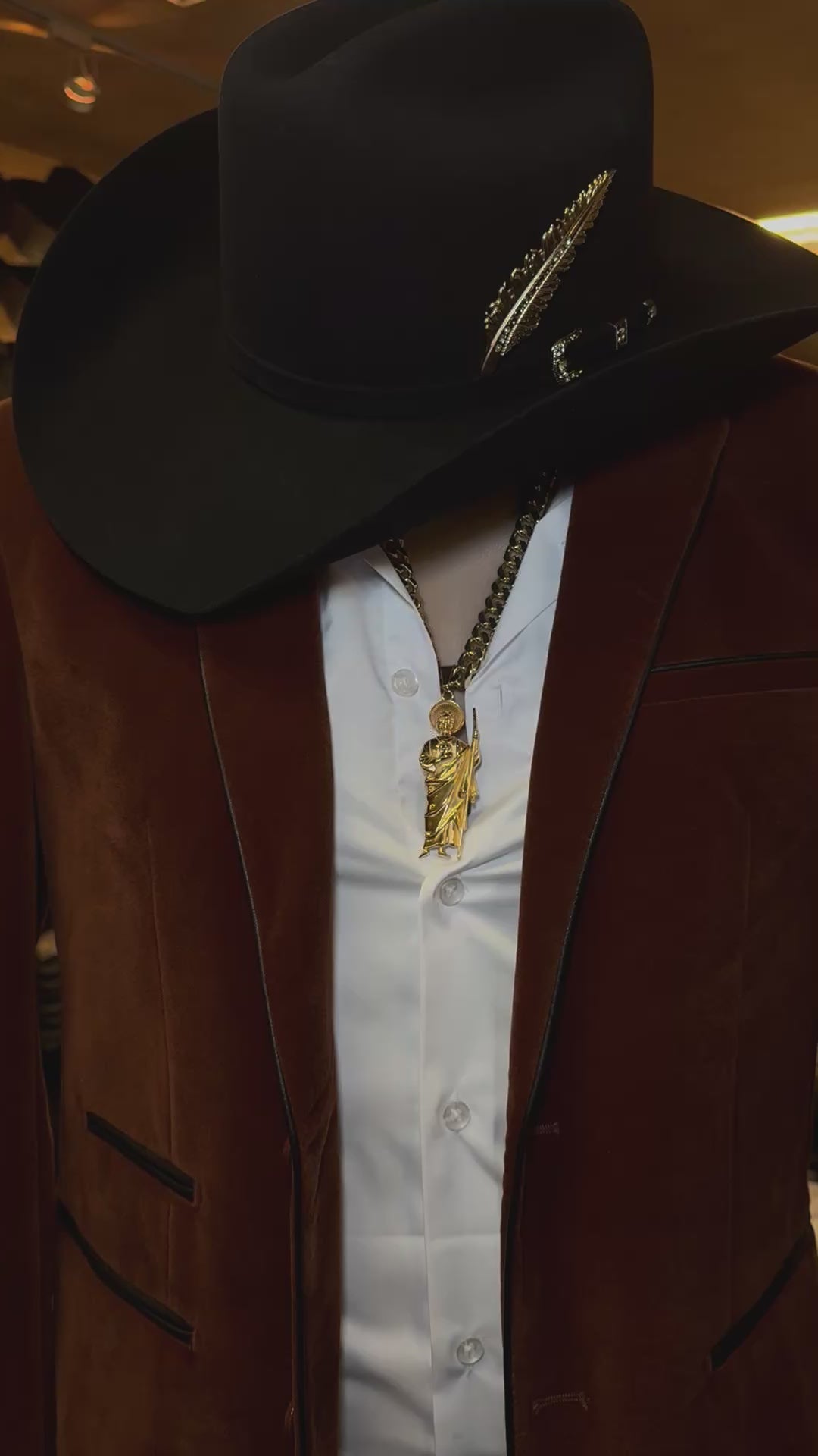 Blazer marrón oscuro estilo western con dos botones para hombre