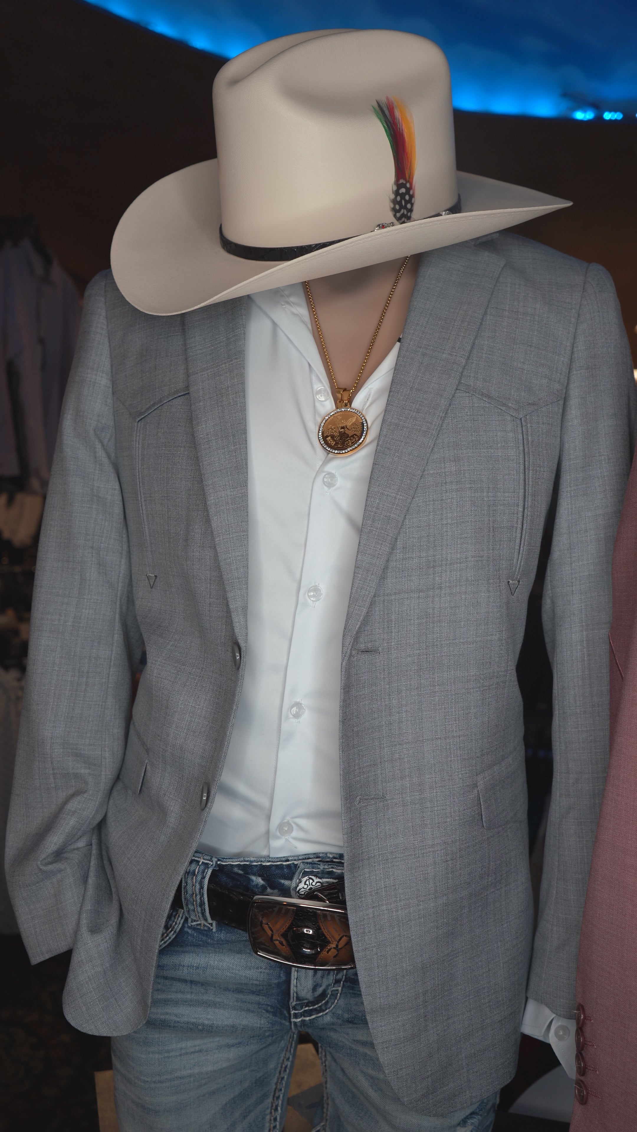 Blazer plateado estilo western con dos botones para hombre