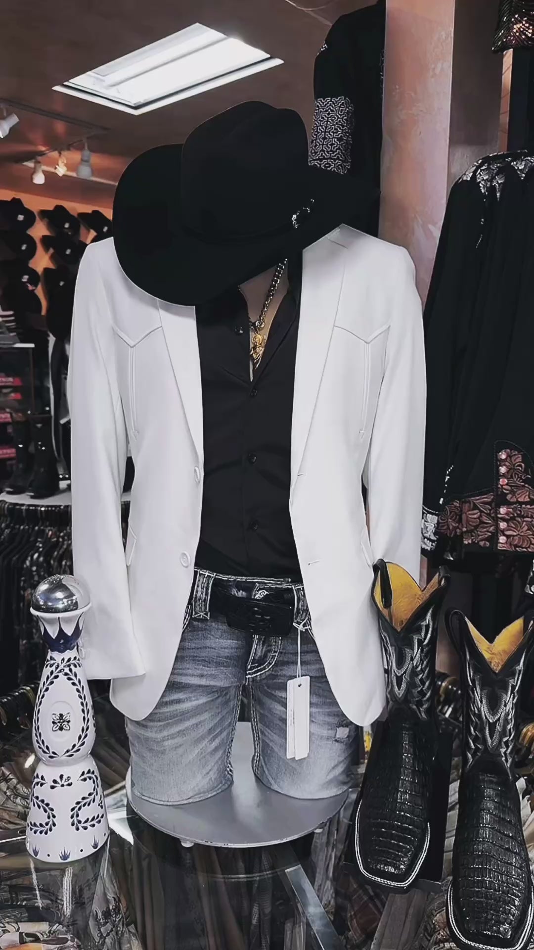 Blazer blanco estilo western con dos botones para hombre