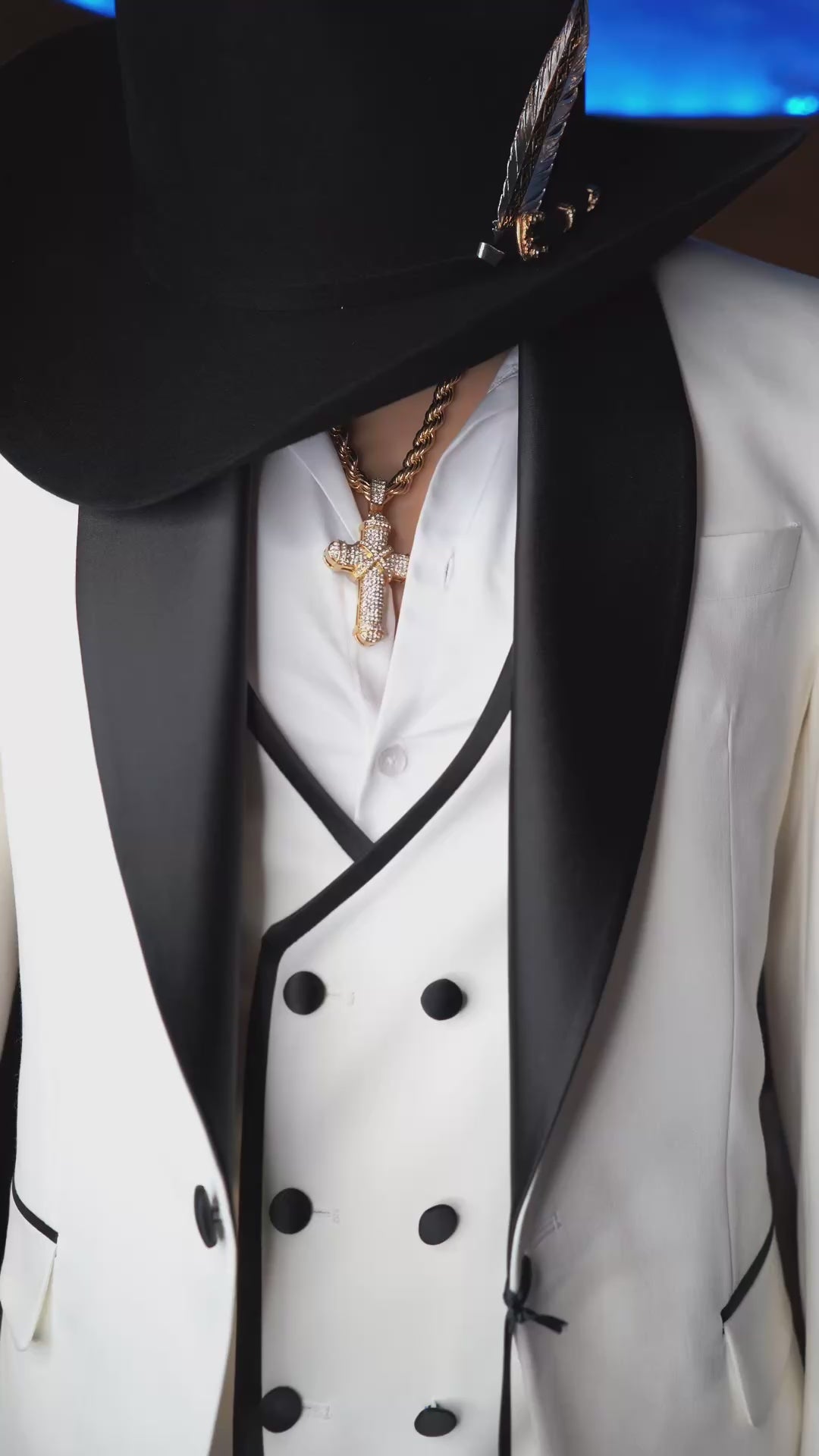 Traje de lujo de tres piezas "El Semental Blanco"