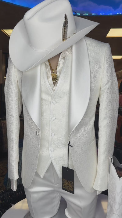 *Nuevo* “Lanzamiento exclusivo: Traje de tres piezas de lujo de encaje blanco puro de Sanchez Brothers”