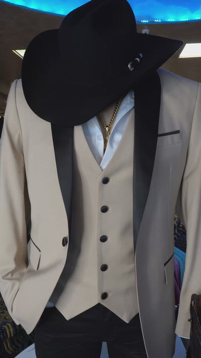 Men’s Tan 3-Piece Suit with Black Collar