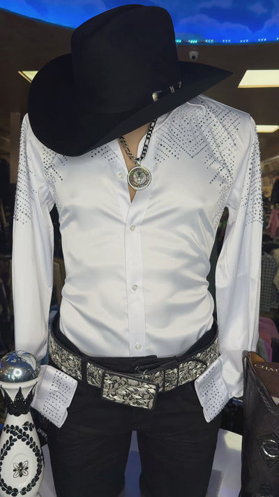 *NEW* White Rhinestone Slim Fit Shirt – Modern Elegance